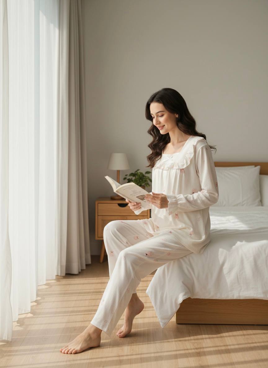 يتميز بنسيج خفيف الوزن يسمح بمرور الهواء، مما يجعله مثاليًا للاستخدام على مدار العام. تضيف طبعة الزهور الرقيقة سحرًا أنثويًا، بينما يسمح التصميم المريح بالحركة الطبيعية سواء كنتِ تسترخين في المنزل أو تستمتعين بقهوتك الصباحية أو تستقرين في نوم هادئ ليلاً.