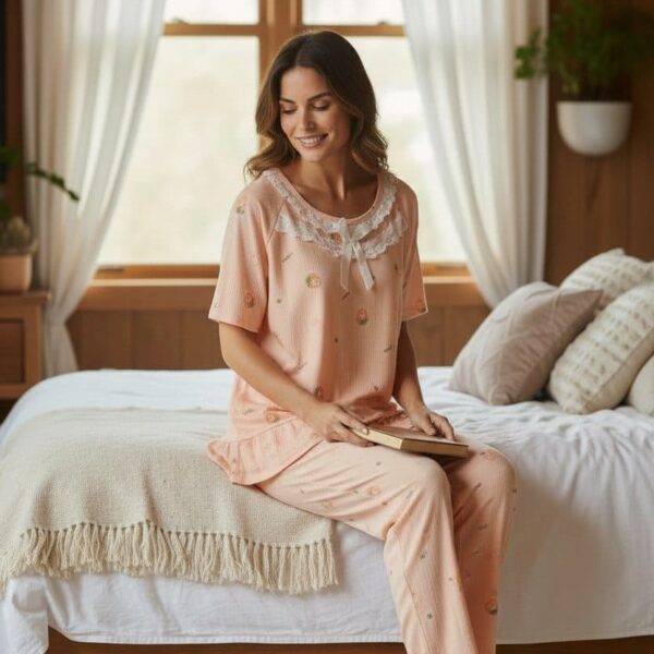 The relaxed silhouette allows free movement, while the lightweight material makes it suitable for all-season wear. Whether you prefer long pants or shorts, this set adapts easily to your comfort and mood—ideal for nighttime rest, morning relaxation, or cozy indoor wear.