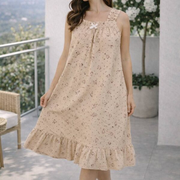 Mini Bear Print Sleeveless Night Dress – Soft Cotton Lounge Wear